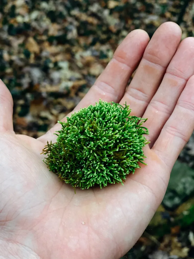 In regions with high humidity and little light, like Central Texas, ball moss (Tillandsia recurvata), a non-parasitic plant, clings to tree branches.
